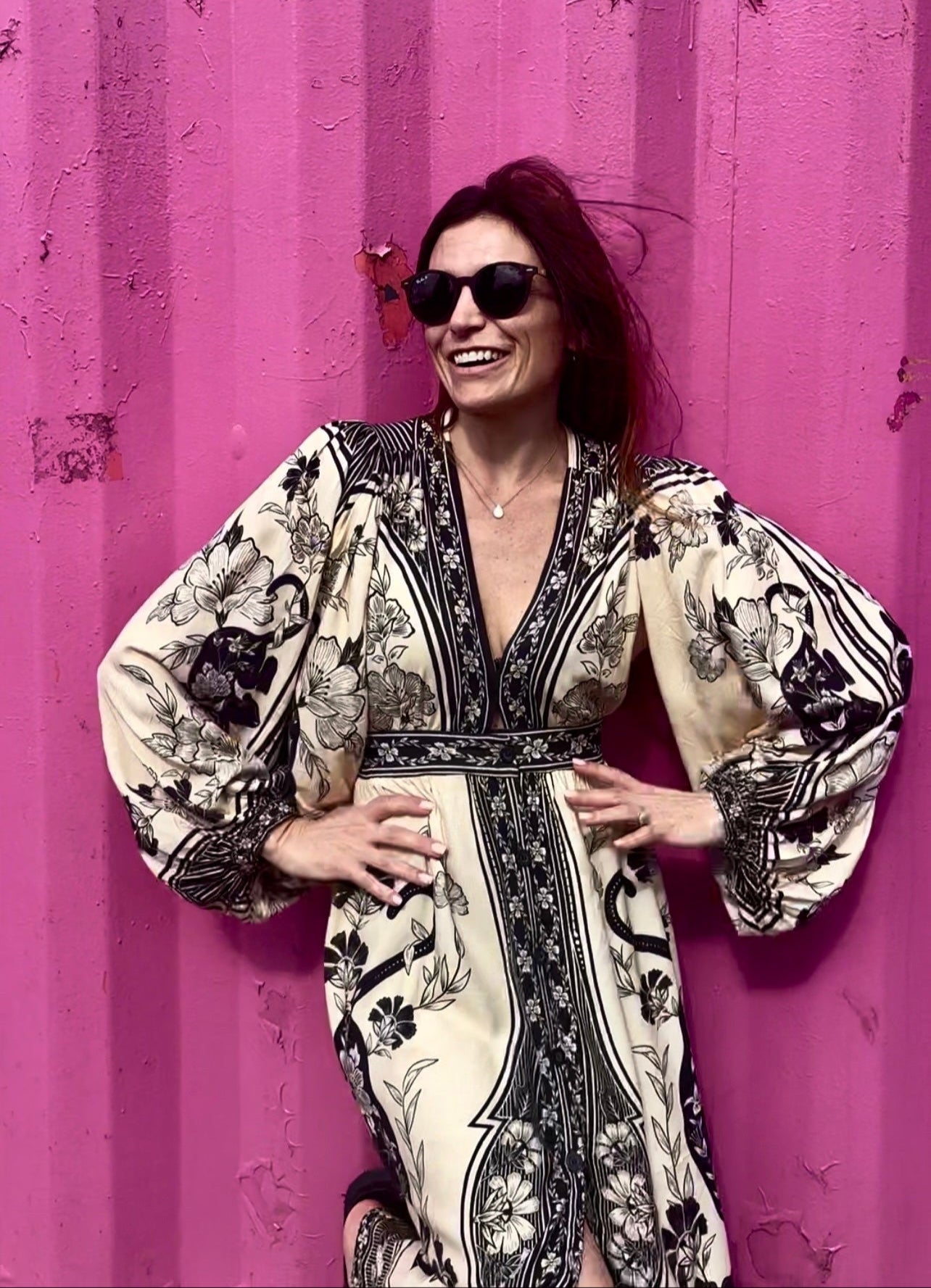 Helena Short Bohemian Dress with Tassels in Pink Print