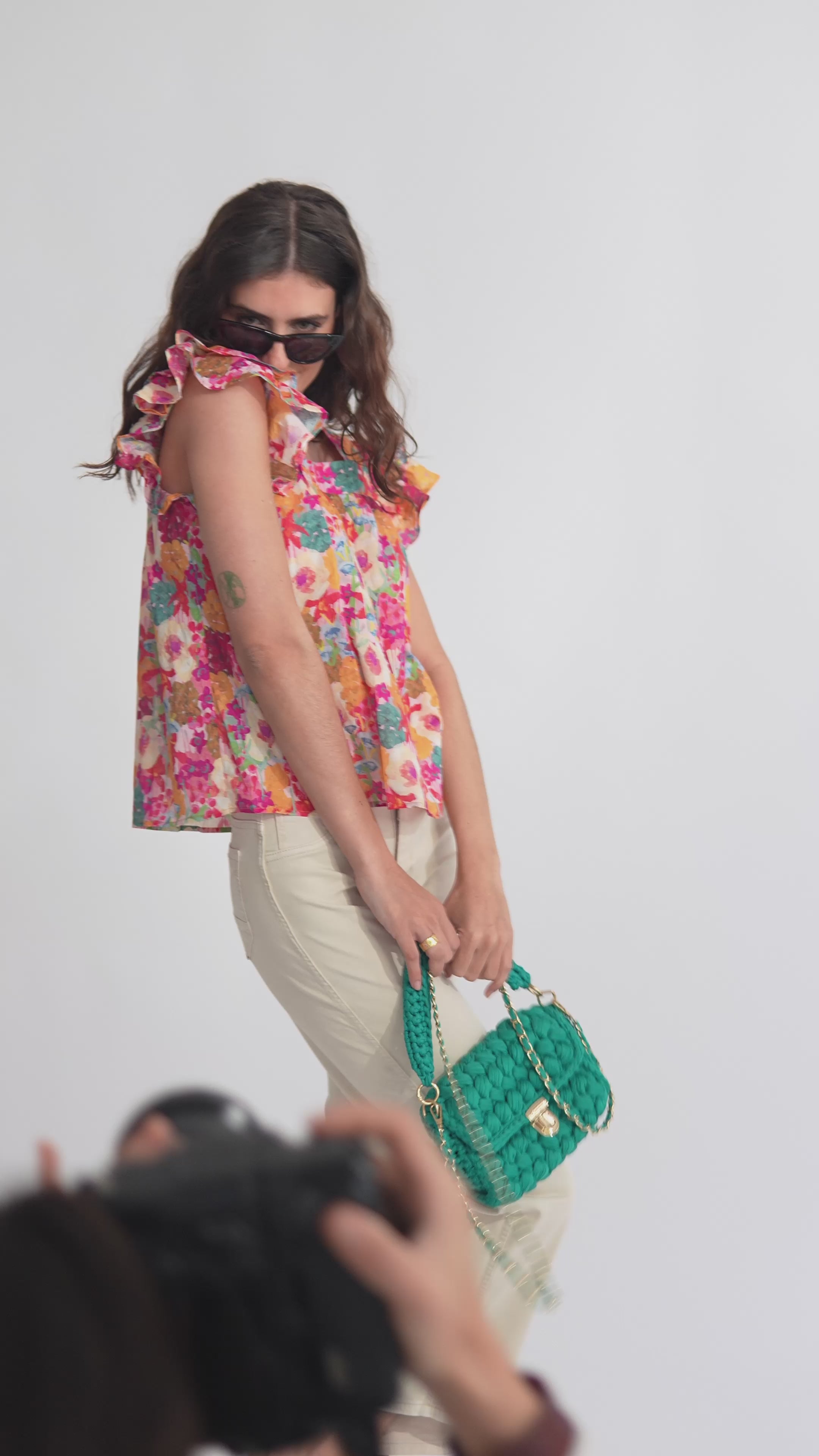 Cotton Frill Sleeved Blouse in Bright Summer Floral