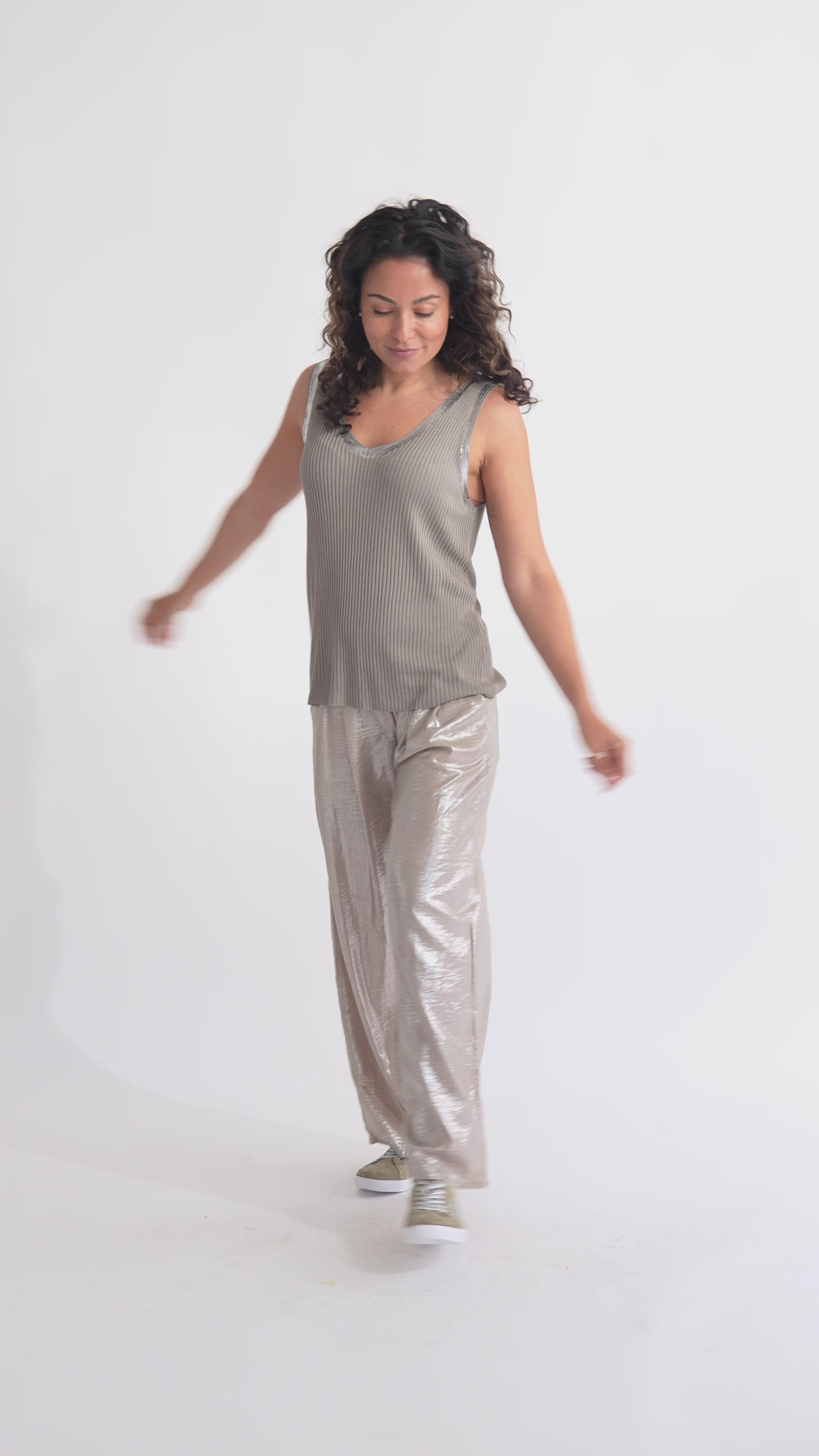 Pure Linen Italian Wide Leg Shimmer Pants in Champagne