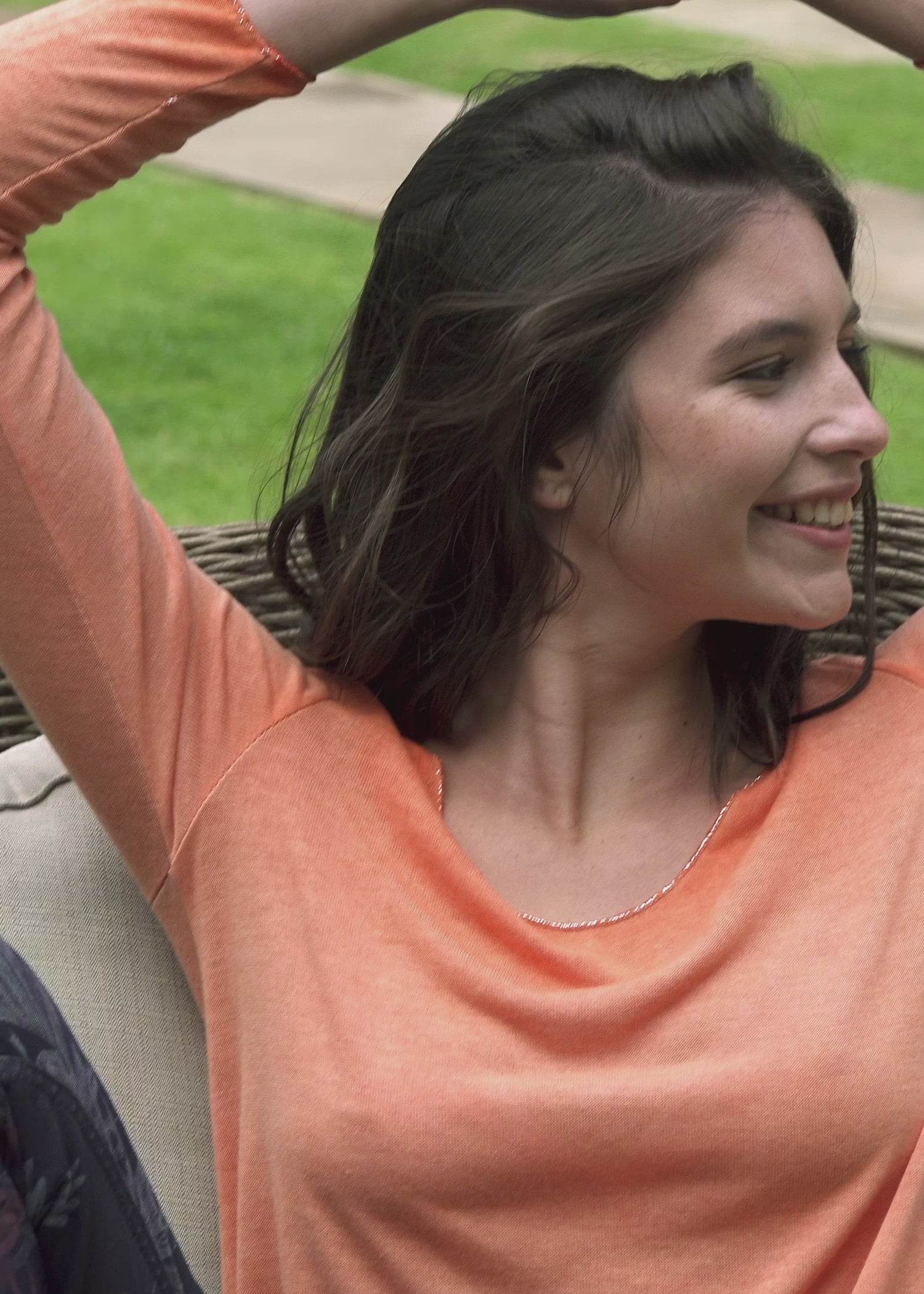 Our model Rachelle is 178cm / 5'10" tall, with a hip diameter of 90cm. Rachelle is wearing a small that fits well on her.